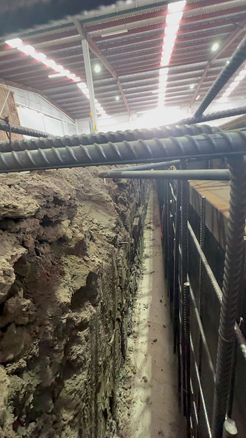 Reinforcement & Formwork – heavy steel mesh and bar reinforcement for structural performance.